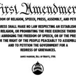 FIRST AMENDMENT – Freedom of Religion, Speech, Press, Assembly, and Petition: Congress shall make no law respecting an establishment of religion, or prohibiting the free exercise thereof; or abridging the freedom of speech, or of the press; or the right of the people peaceably to assemble, and to petition the Government for a redress of grievances.